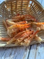 因為赤米身上帶一點點的紋路,就像一粒粒紅色的米,腳顏色亦偏紅,肉質比其他海蝦軟身,小朋友都好易咬到。味道特別鮮甜,深受歡迎。